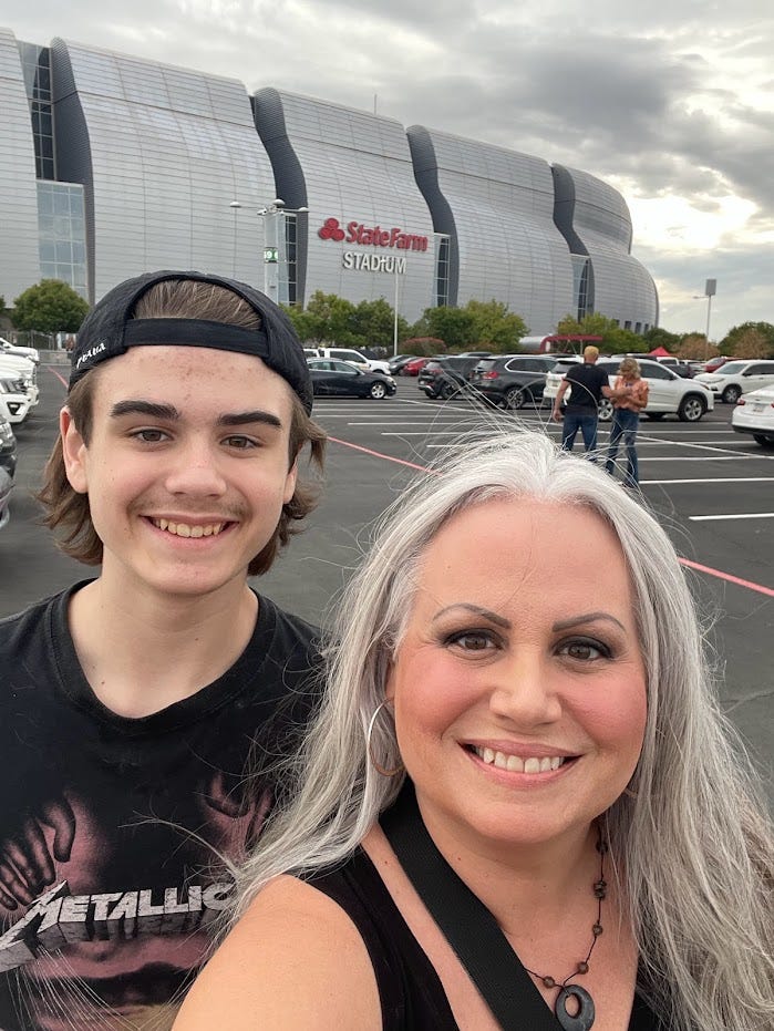 Kath and I have been friends since we were in English class together in the 8th grade in Ohio, like, 40 years ago. One of my formative friends. My bestie. Lucky for me, she moved to Arizona shortly after I did, and we’ve just maintained our friendship for all these years which is such a huge blessing. * Love you, girl. * Anyways, she and her husband and two sons were sitting not too far away from us at the stadium.